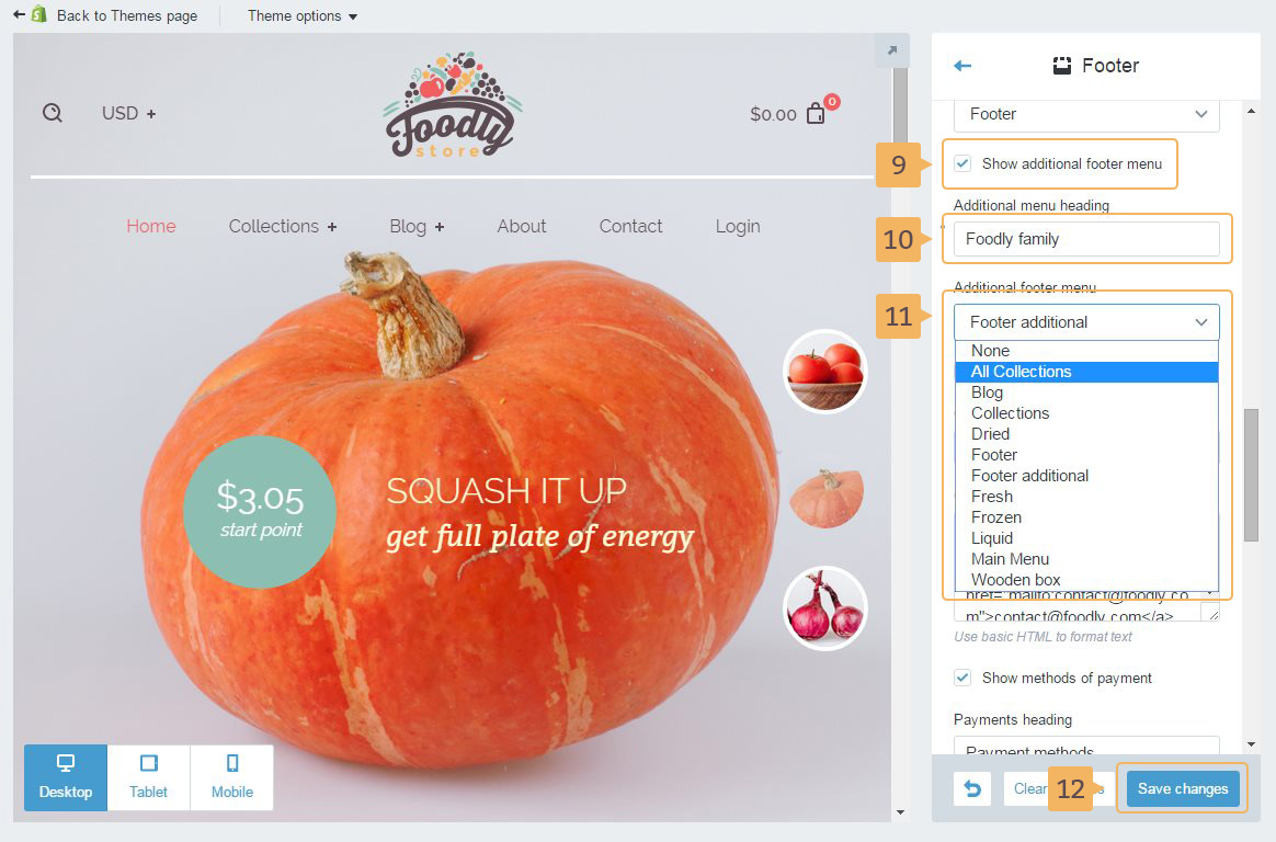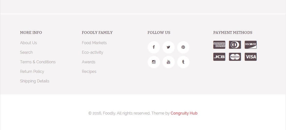 In Foodly theme, you could use the additional footer menu. If you want to use additional footer menu, please, go through the following steps: