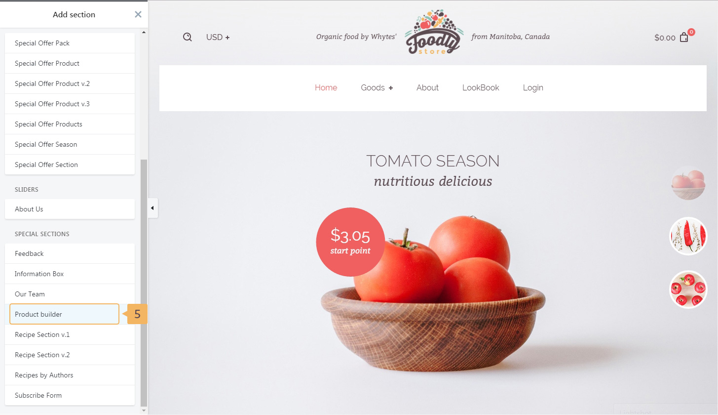 Foodly Product Builder (Fig. 3.37) can contain up to 4 recipes (packs) with products. Recipes (packs) are articles from Blog.