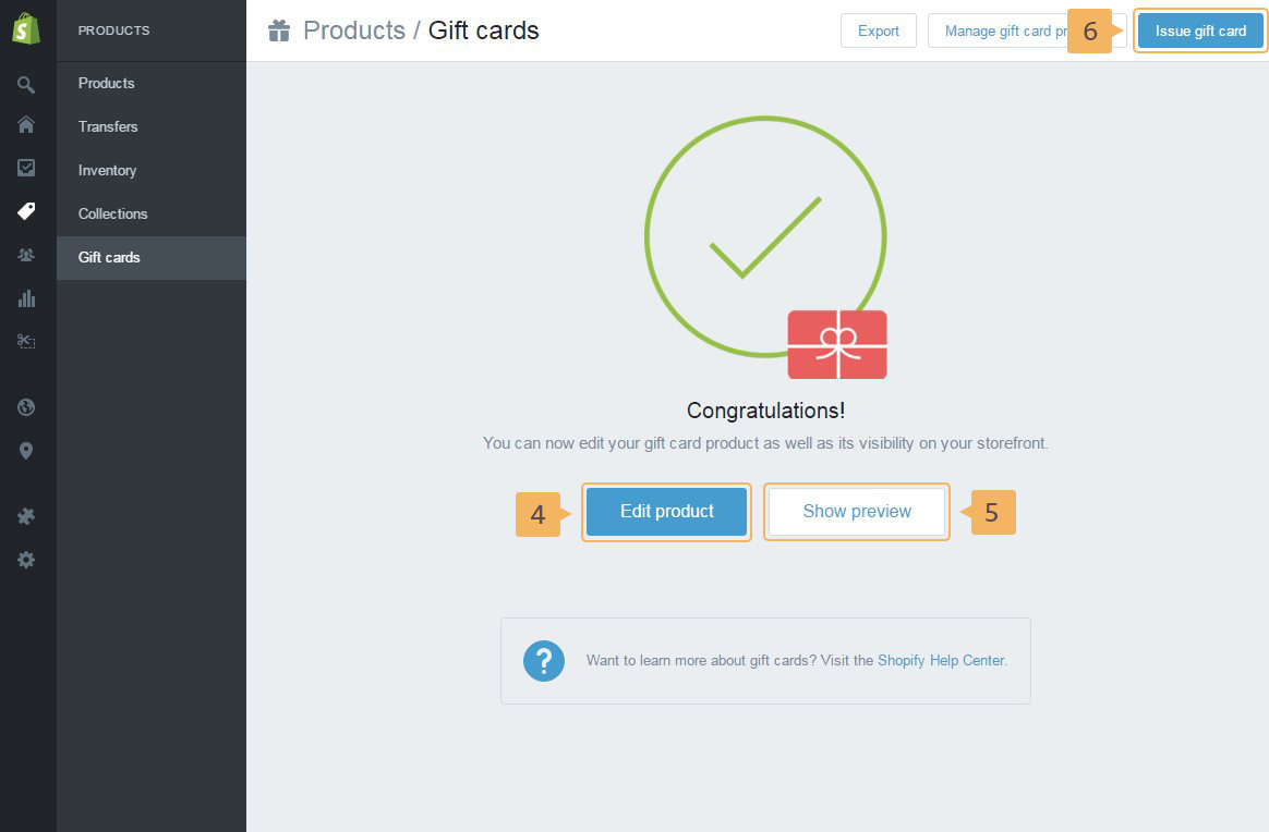 If you are conviced that gift card rocks and are ready to start using them you may check great manual about work with gift card from Shopify or follow our instructions to get your gift card look like this Figure 7.4
