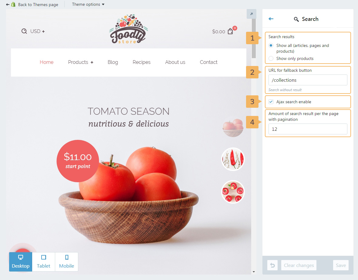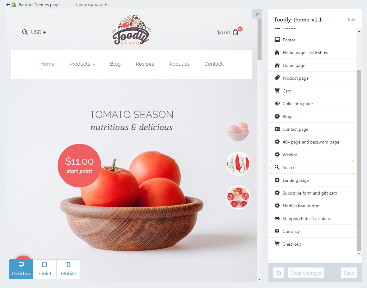 E-commerce can't operate without fast, convenient and efficieent search. It’s no wonder that so many users prefer searching over clicking categories, it speed up the surfing website process. That's why Foodly theme has good focus on it, besides desktop, creating special look for mobile devices. According to this Shopify blog post, there are lots of other search tips you need to follow to benefit from search functionality. For example, you need give a try to Instant Search + to boost conversion with fast as-you-type product suggestions and be aware of what your clients are looking for on your site. Another app you might consider is Searchanise. Its main advantage is flexible pricing policy and free plan for small businesses. Besides these recommendations, we think that you also need to be aware of other studies of e-commerce search to have a full picture and make right decisions in running your online business. For example, pay attention to this post The Current State of E-commerce Search by SmashingMagazine.