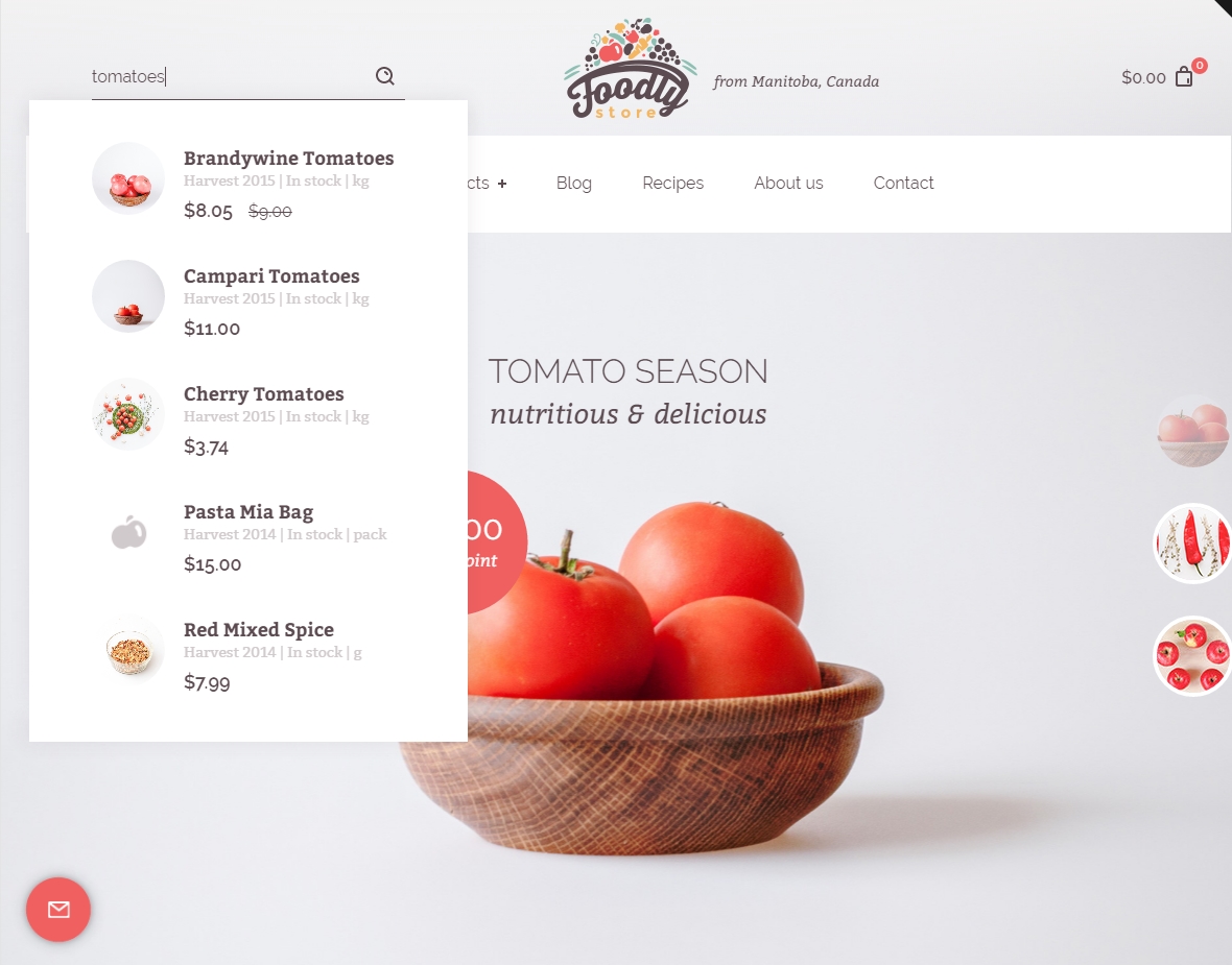 From version 1.1 Foodly theme has Ajax Live Search. It shows search results while your customers type request. The search results have look as in Fig. 16.3