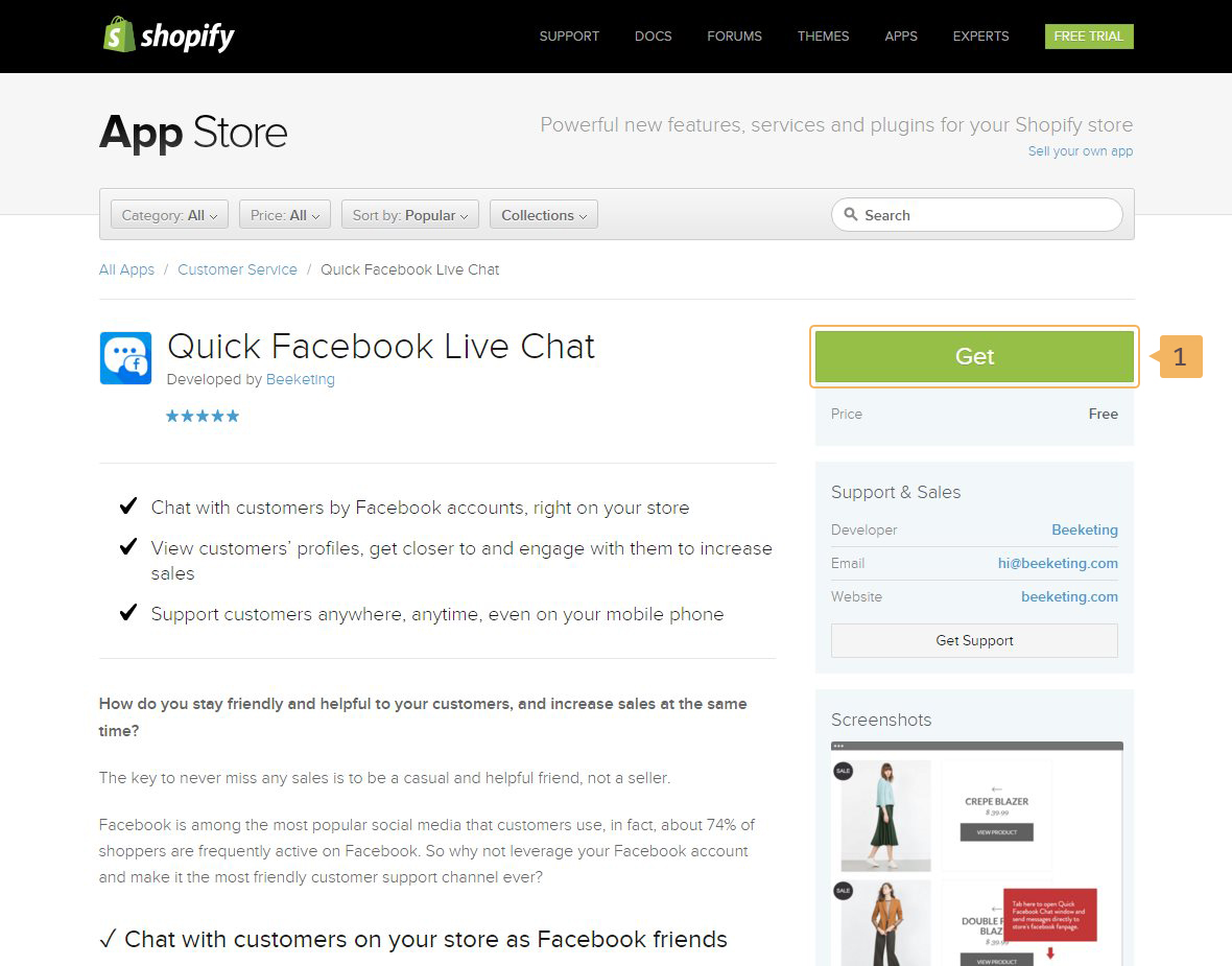 That's why we are recommending you to install 'Quick Facebook Live Chat App' going through the following steps: