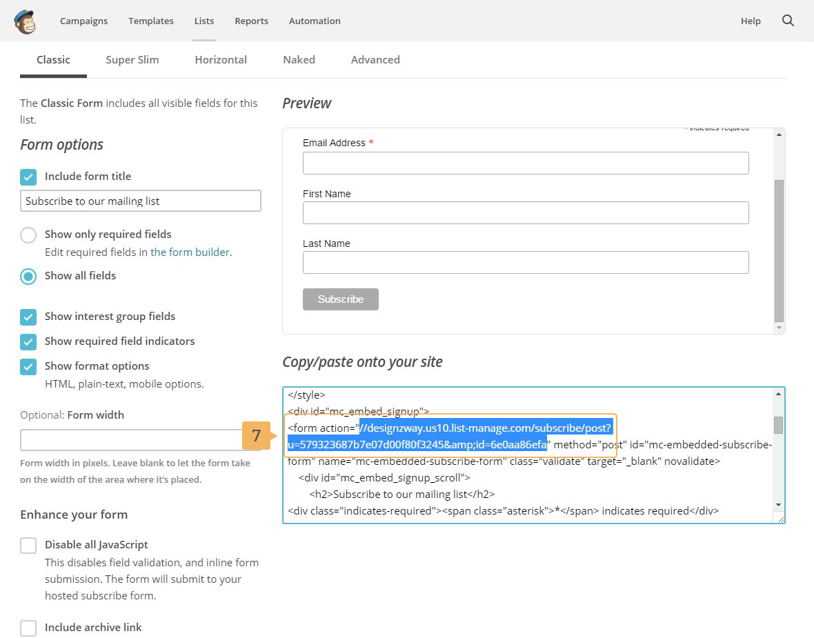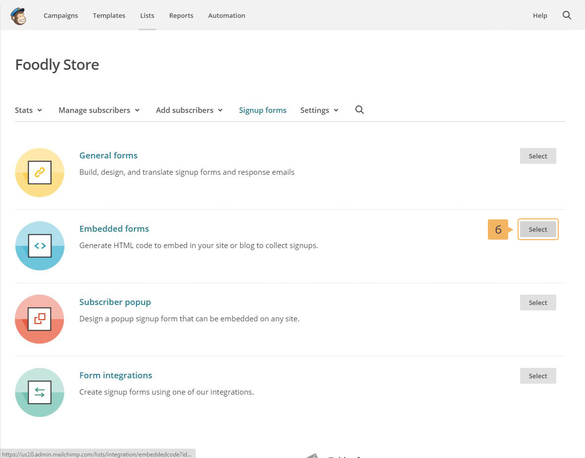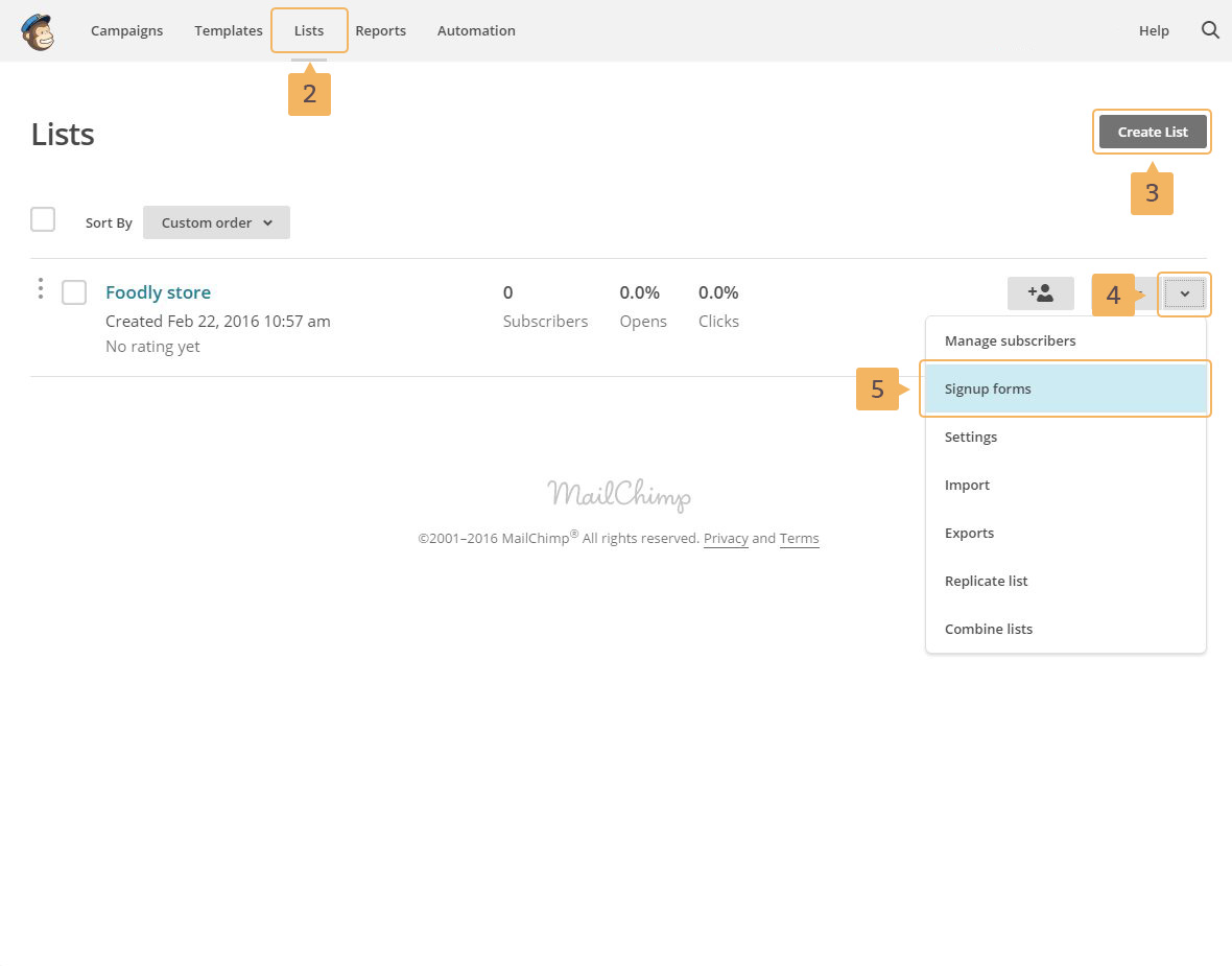 Before starting gethering subscribers you need to set up subscribtion form and getting action URL for MailChimp. To make everything work, please, go through the following steps below: